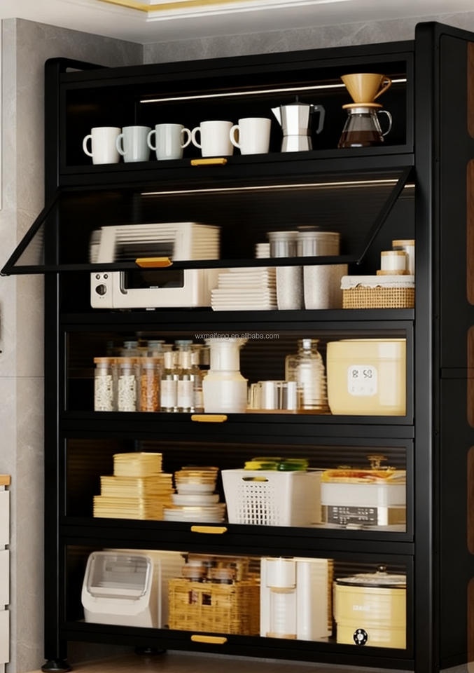 Vente flash, étagère de rangement multifonctionnelle pour cuisine, en métal, sur pied, multi-niveaux, avec porte, pour four, micro-ondes, casseroles, bols