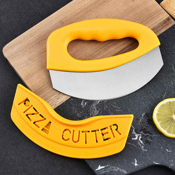 Offre Spéciale couteau à Pizza multifonctionnel en acier inoxydable cuisine Pizza roues ronde Rocker Cutter trancheuse avec gaine de protection