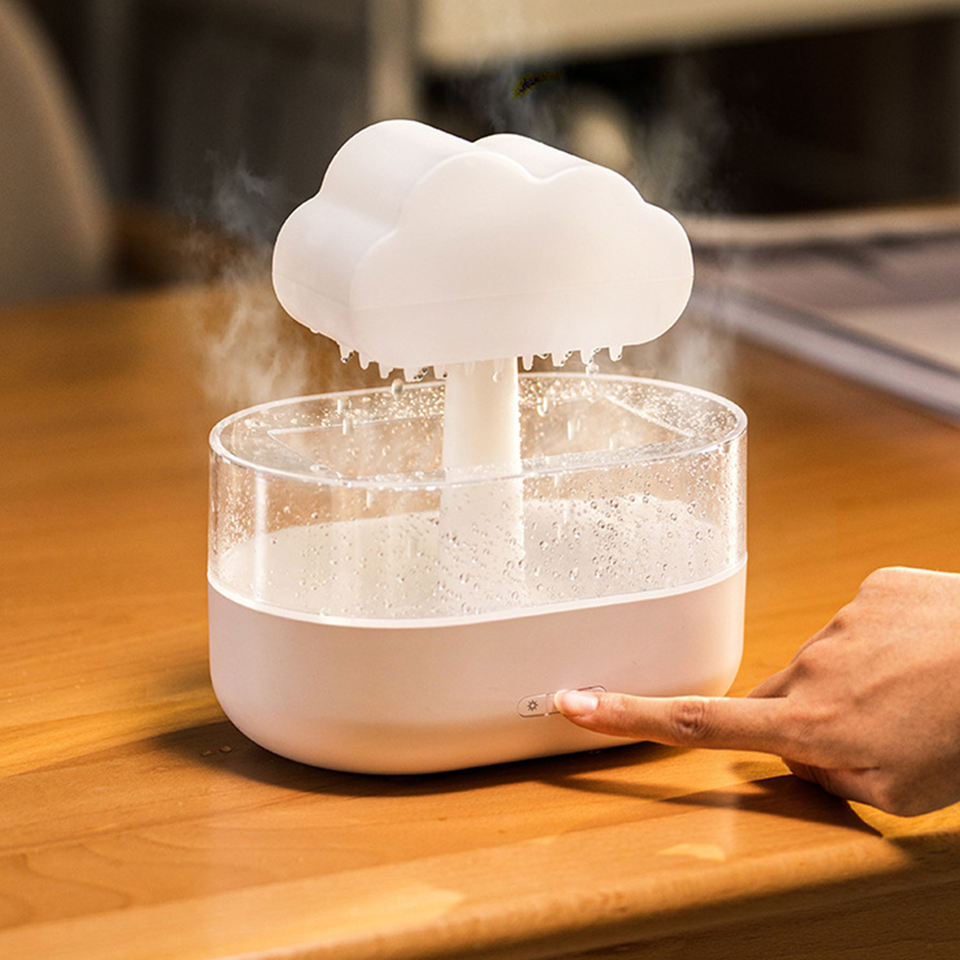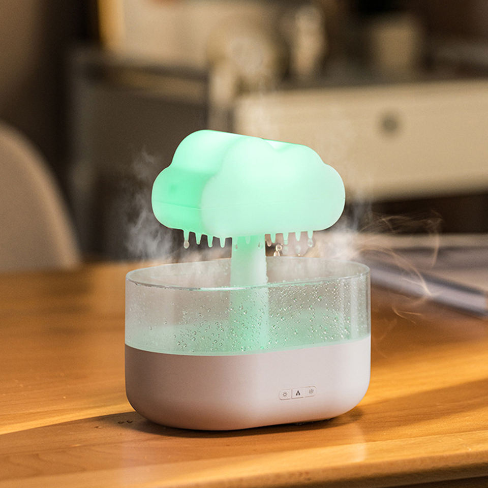Offre Spéciale électrique champignon forme goutte de pluie arôme huile essentielle humidificateur blanc chaud brumisateur lampe pluie nuage diffuseur pour voitures