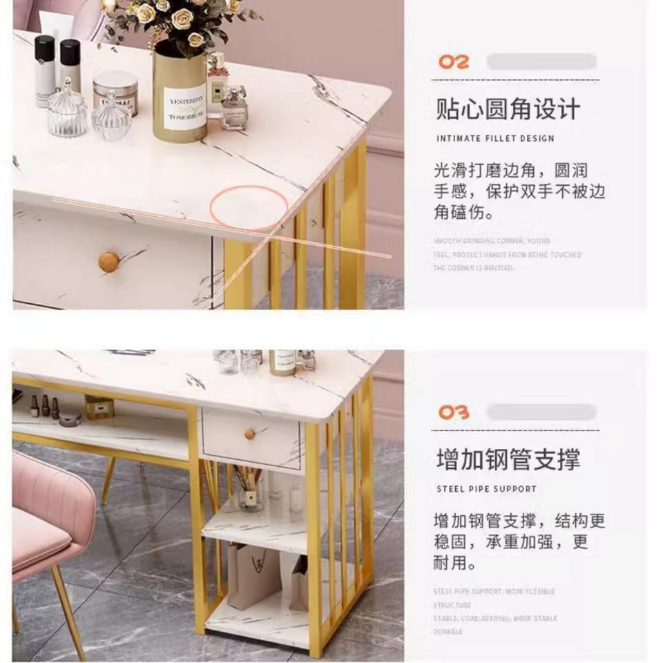 Table de manucure résistante à l'acétone pour technicien en ongles, avec cadre métallique, station de salon de manucure, organisateur de rangement de beauté, vente chaude
