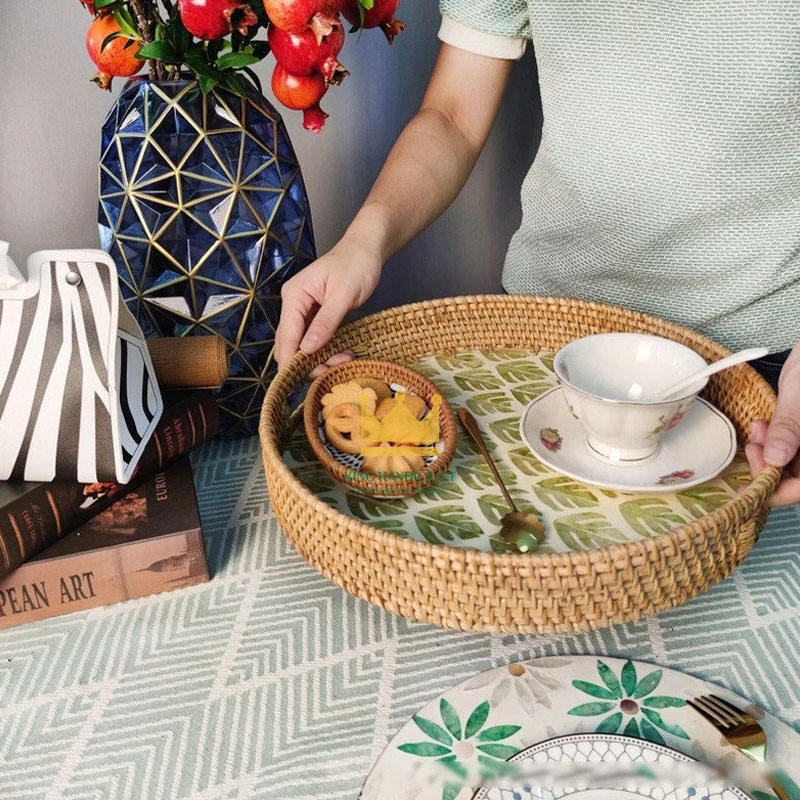 Vente flash - Plateau de service alimentaire portable en rotin naturel écologique, décoratif, fait à la main avec des coquillages, en provenance du Vietnam