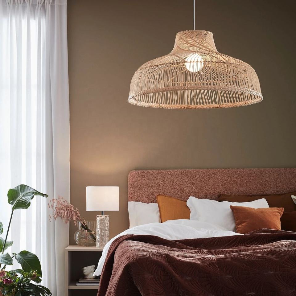 Vente flash - Abat-jour en rotin naturel, lampe suspendue rustique faite à la main pour la maison et l'hôtel, vente en gros au Vietnam