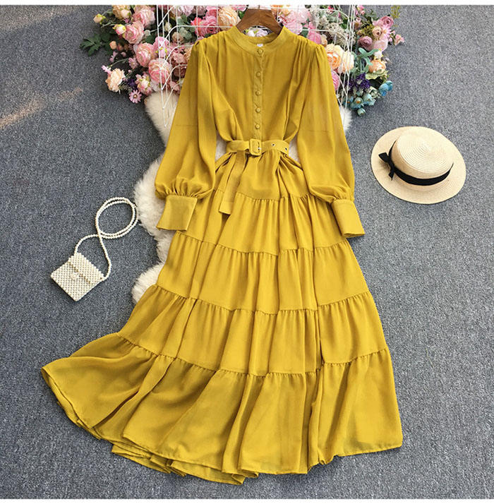 Nouvelle Robe Longue Décontractée Tissée Couleur Unie à Manches Longues pour Femme – Collection 2025 – Grande Vente