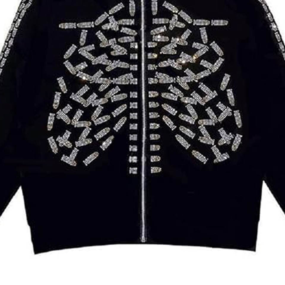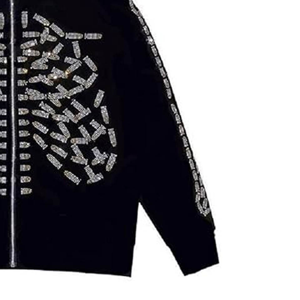 Nouveauté en promotion : Sweats à capuche en strass pour hommes – Style unique, respirant, en coton mélangé léger