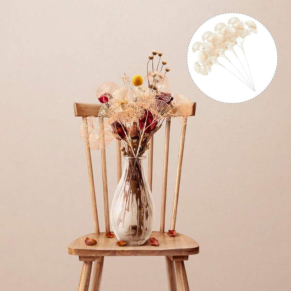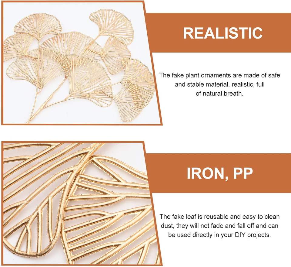 Nouveautés en promotion : Fleurs artificielles faites à la main en forme de feuille de Ginkgo Biloba dorée à 3 branches pour la décoration de la maison à Pâques et Noël (vente en gros)