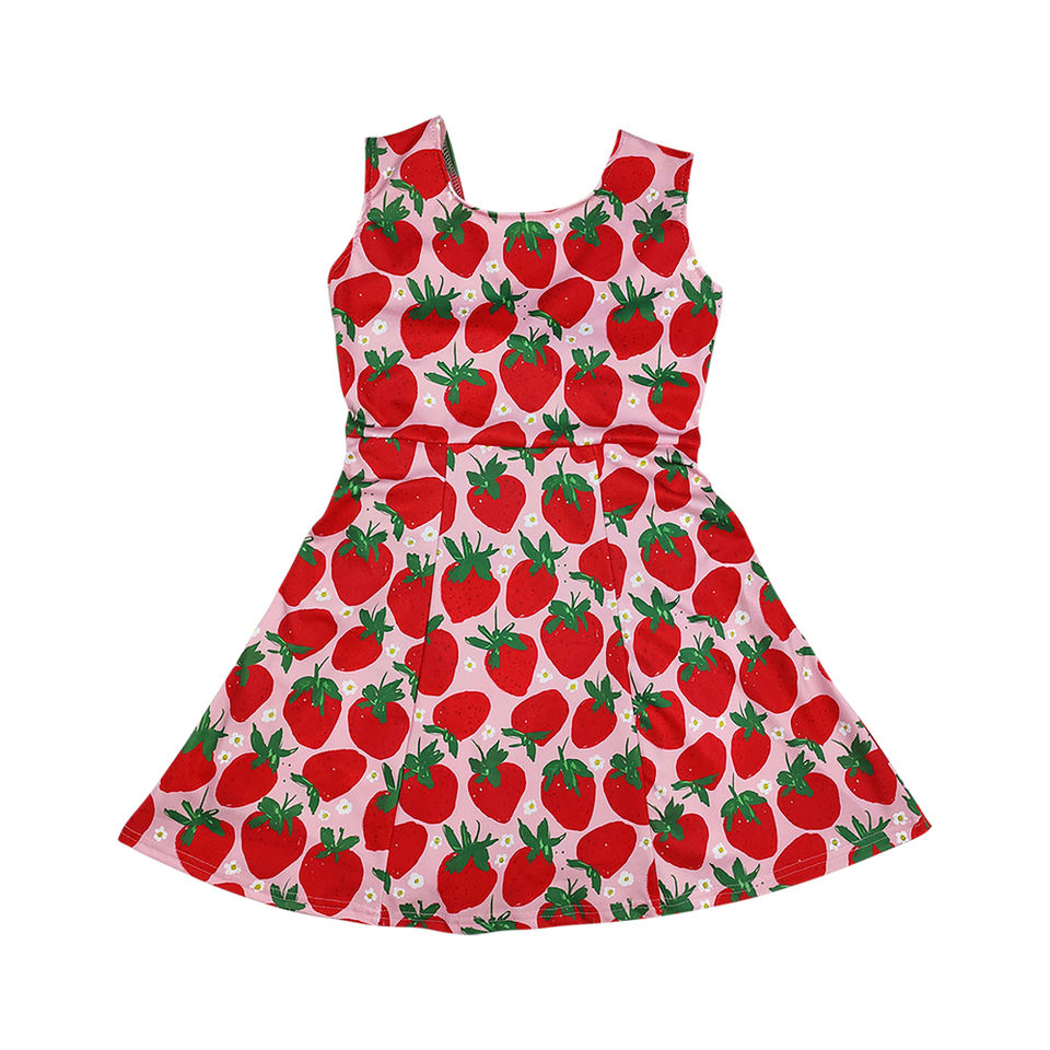 Hot Sale New Fashion Summer Kids Girls Casual Athletic Wear Comfortable Sleeveless Strawberry Yoga Dress Built-in Shorts