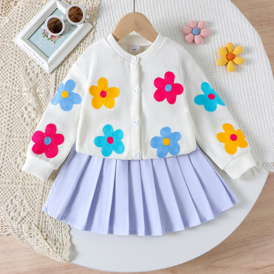Vente flash Nouveaux modèles Robe pull pour petites filles Couleur unie Motif floral Ensemble de pull pour enfants Robes pull pour fille