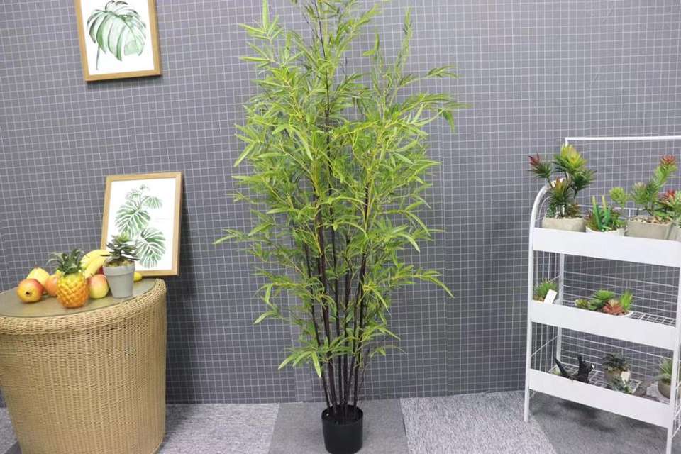 Offre Spéciale Nouveau Style Artificiel Décoratif Extérieur Vert Chanceux Bambou Feuilles Plante