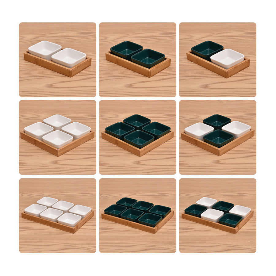 Vente chaude Nouvel An Plat à bonbons et fruits secs créatif Plat de service en céramique Ensemble de plateaux en bois pour la maison Mariage