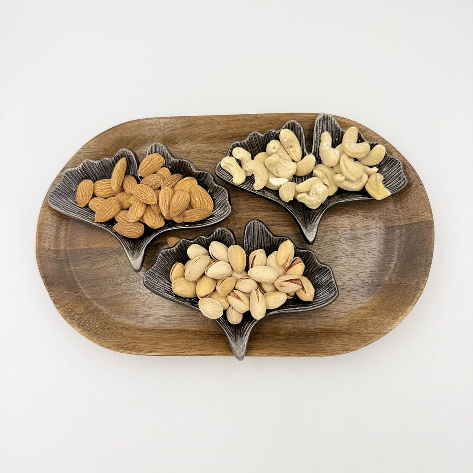 Vente flash, nouveau design luxueux, bols à fruits secs en forme de feuille avec finition nickel noir pour servir des fruits secs par R B Overseas