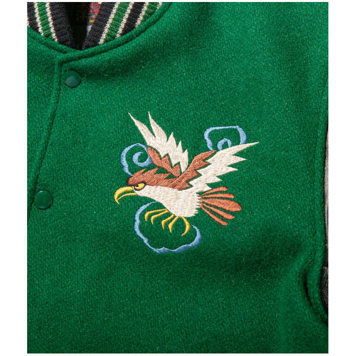 Veste bomber varsity pour homme, vente chaude, OEM, couleur verte, patch brodé, emblèmes, toile fine, devant, streetwear