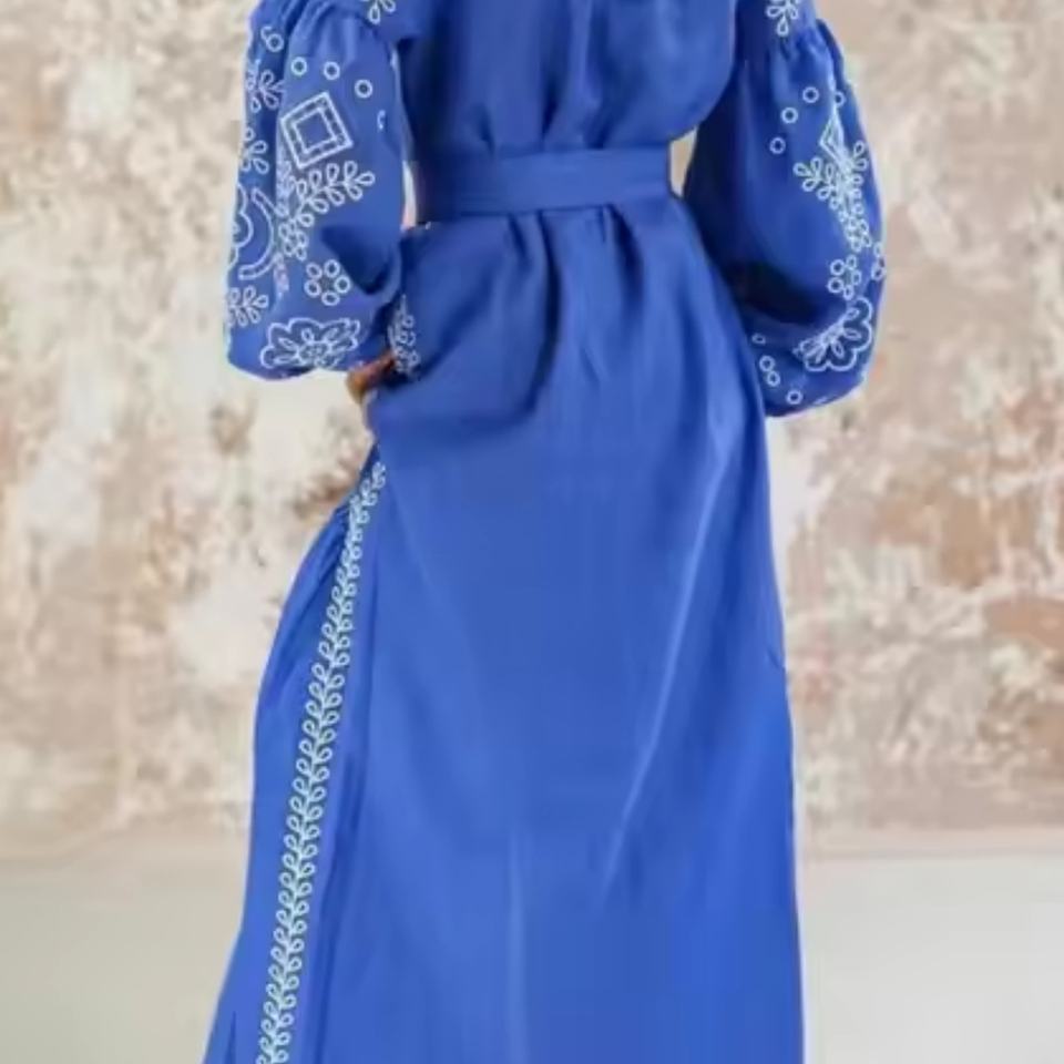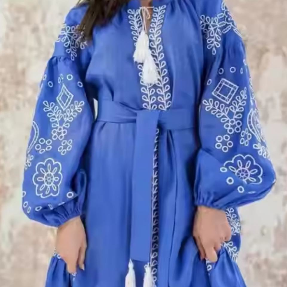 Robe Femme en Lin et Coton Broderie Florale Personnalisée OEM Style Bohème Décontracté avec Ceinture – Nouvelle Collection Automne – Vente Flash
