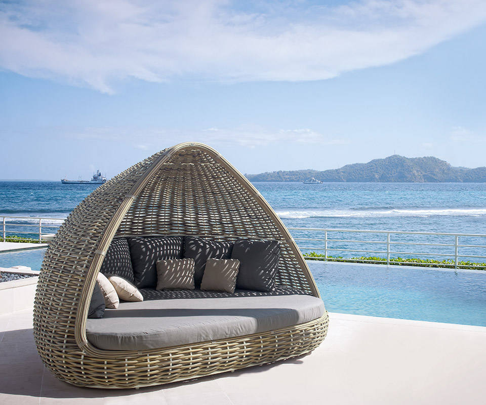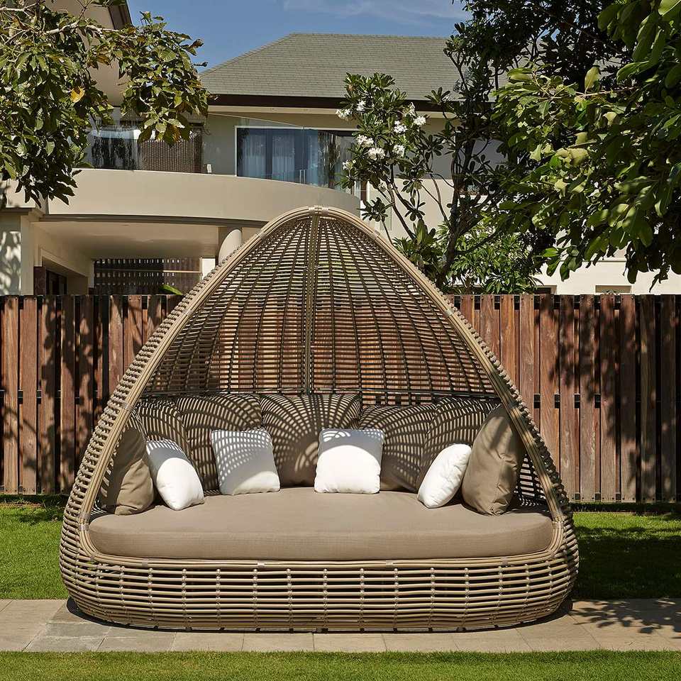 Offre Spéciale lit d'extérieur en rotin de jour pour salon d'extérieur coussins de canapé Patio Garden Rattan Cocoon Lounge Bed