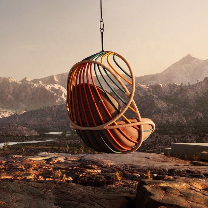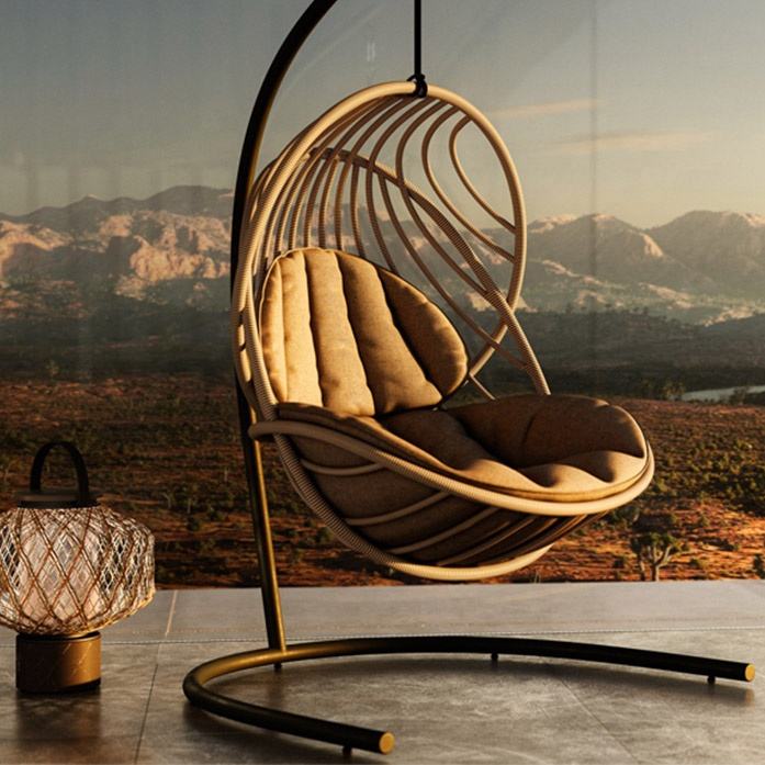 Mobilier de jardin Offre Spéciale Conception à chargement élevé Balançoire suspendue Plaisir décontracté Relaxant Rotin Porche Lit Chaise en osier pour l'extérieur Jardin Ensemble de mobilier de plein air