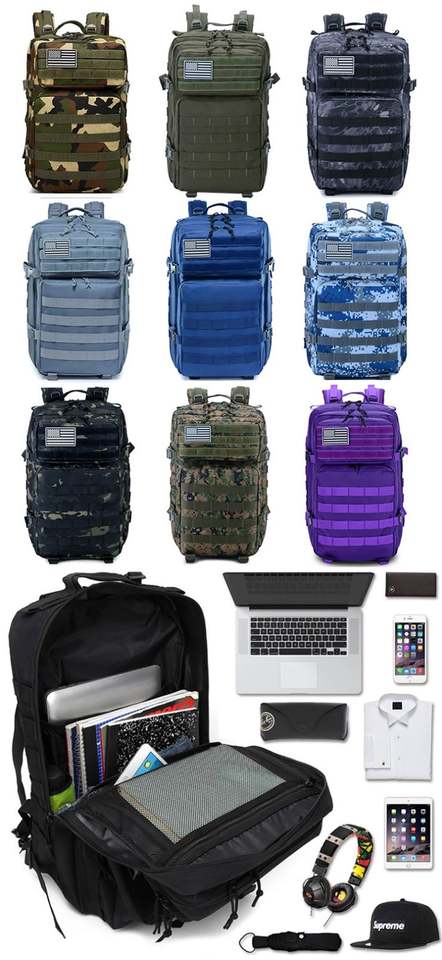 Sac à dos tactique d'extérieur en vente chaude, plusieurs choix de couleurs, logo personnalisé, polyester Oxford durable, imperméable, 20-35L