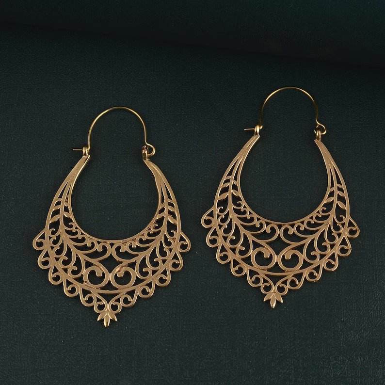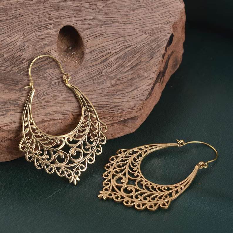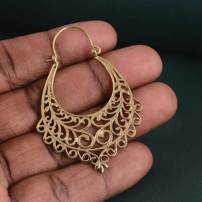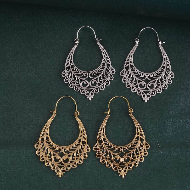 Hot Sale Pair of Vintage Filigree Plug Hoop Statement Earring, Silver Brass Carved Hoop Earrings Jewelry Wholesale