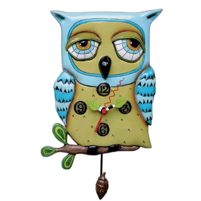 Offre Spéciale Horloge Hibou Personnalisée Faite à la Main en Résine Bleu Vieilli avec Pendule 12 pouces de haut Yeux Somnolents