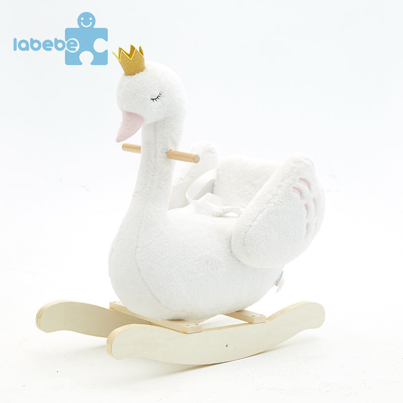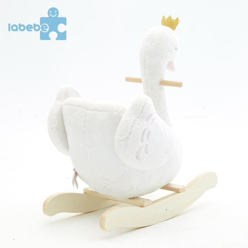 Cheval à bascule en peluche en bois doux blanc cygne chaise à bascule cadeau jouet bébé cheval à bascule Offre Spéciale