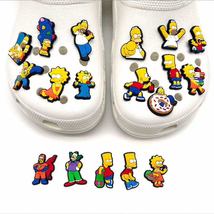 Promotion Populaire Mignonnes Breloques Famille Simpson DIY Dessin Animé Personnalisées PVC Pour Sabots Décoration de Chaussures Pour Adultes Enfants Cadeau de Fête