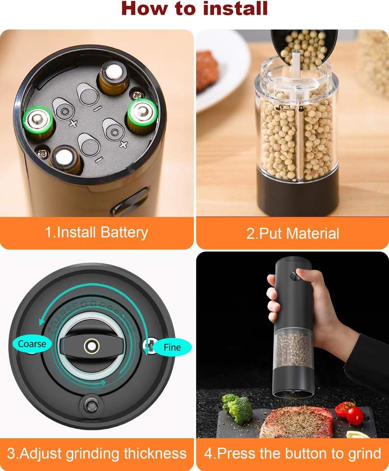Moulin à sel et à poivre électrique automatique rechargeable portable de grande taille avec réglage de la grosseur – Offre Spéciale