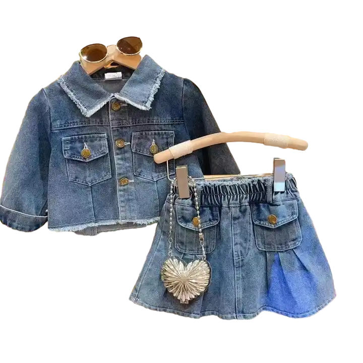 Produits en Promotion : Ensembles Printemps-Automne en Jean, Veste et Jupes pour Filles de 2 à 14 Ans