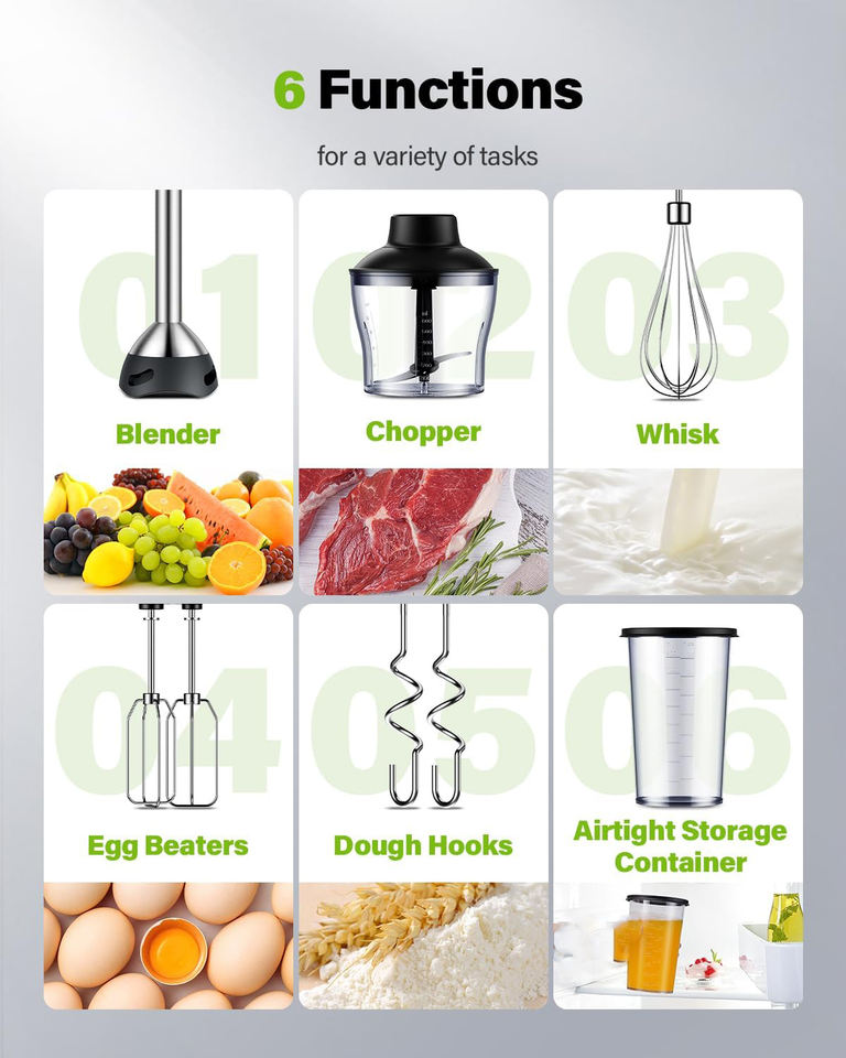 Promotion exceptionnelle : Mixeur plongeant électrique 1200W, mixeur à main, mixeur à vitesse variable, mixeur plongeant, ensemble de mixeur à main avec variation continue