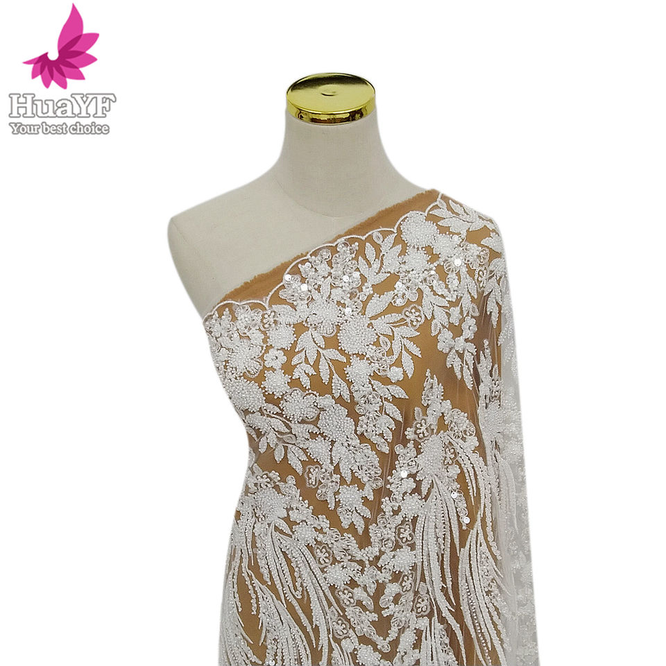 Offre Spéciale blanc pur broderie travail lourd perles perlées dentelle avec paillettes mariée désherbage français dentelle robe Aso Ebi HY2245