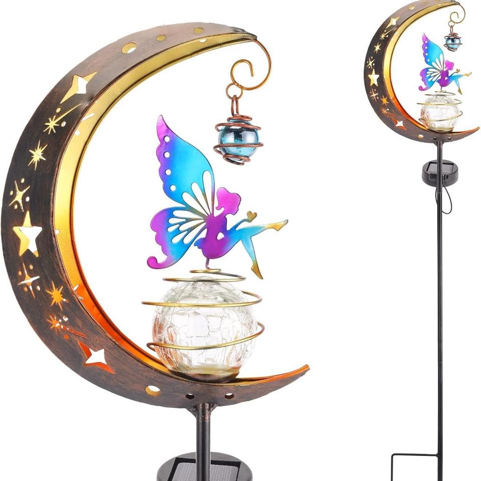 Vente flash : Guirlandes lumineuses solaires LED RGB en forme de lune, en fer forgé, pour jardin, ange avec lampe du Ramadan, éclairage décoratif extérieur RGB, IP67