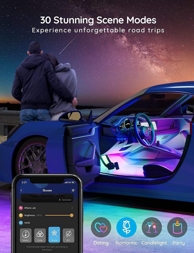 Offre Spéciale RGBIC Smart LED Strip Lights Moderne 2 lignes Intérieur Ambiant Lampe de voiture Plastique Smart RGBIC Technologie pour l'atmosphère de la voiture