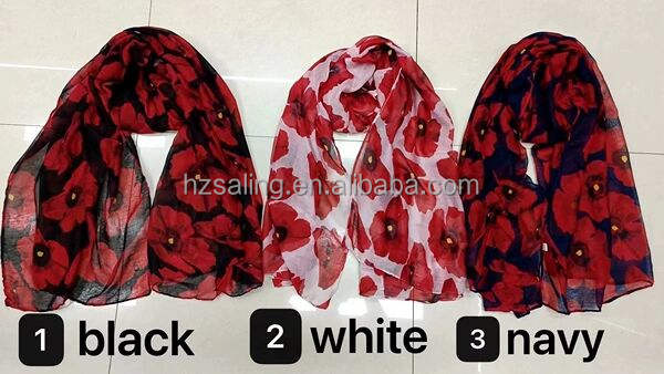 Offre Spéciale Rouge Coquelicot Fleur Foulards Pour femmes Léger Fleurs Châle Wraps