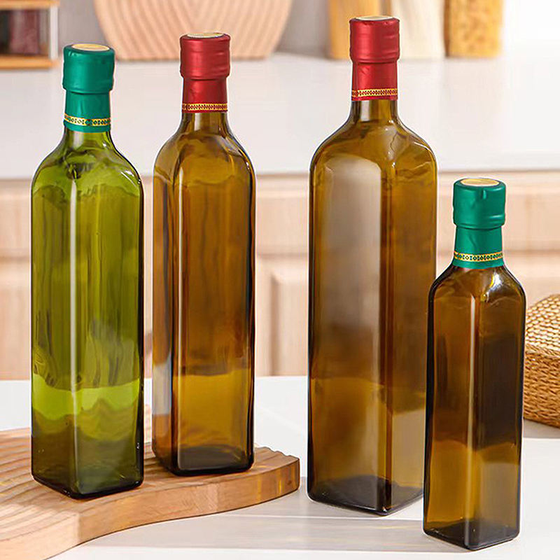 Bouteilles en verre carrées vert armée pour huile d'olive, rechargeables, 250 ml, 500 ml, 750 ml, 1 L, pour la cuisine - Offre Spéciale