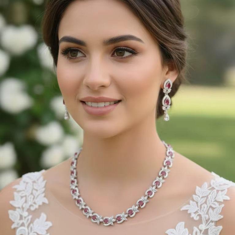 Hot Sale Rose Elegance Ruby Pendant Necklace with Matching Earrings Set for Ladies Special Occasions for Worldwide Supply