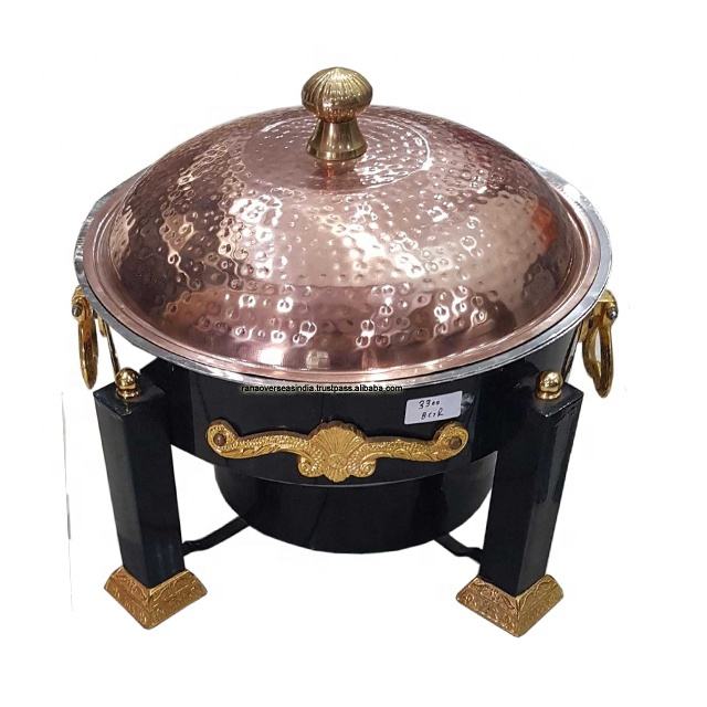 Nom:Chafing dish en laiton, cuivre et fer avec motif martelé sur le couvercle