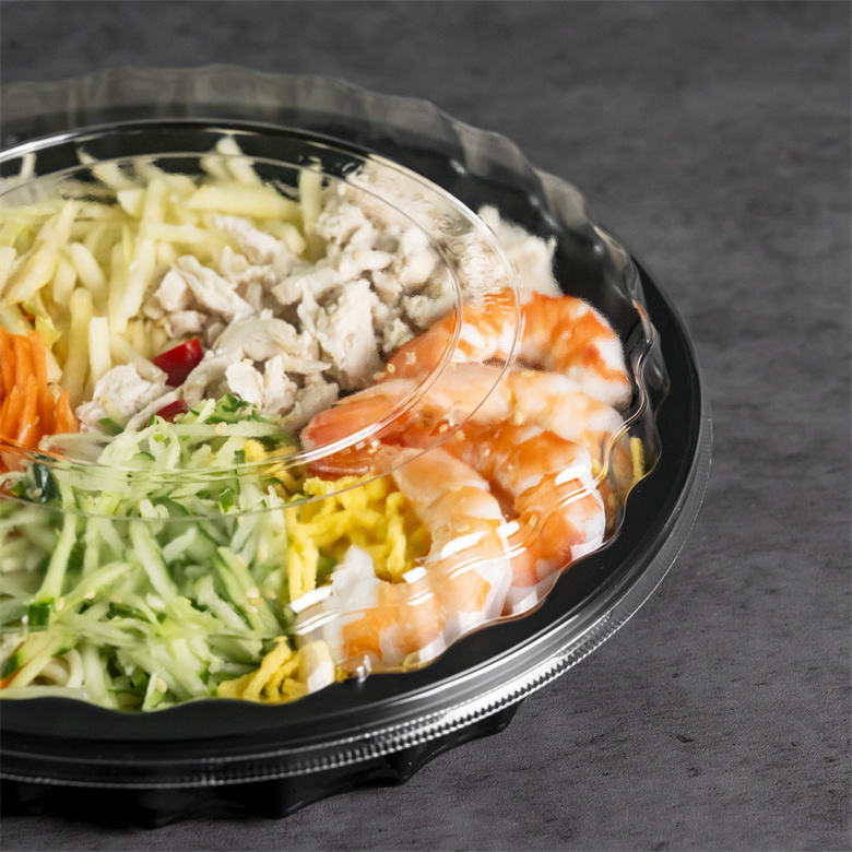 Récipient de stockage alimentaire en plastique jetable rond Offre Spéciale avec base noire pour le stockage des aliments à emporter