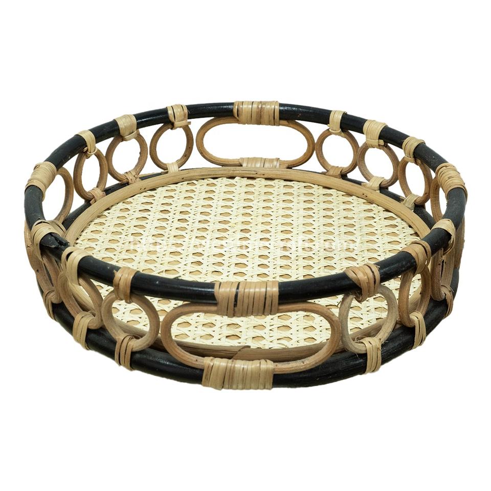 Vente en gros de plateau rond en rotin en osier Offre Spéciale, plateau de service naturel tissé à la main avec bordure noire en gros du Vietnam
