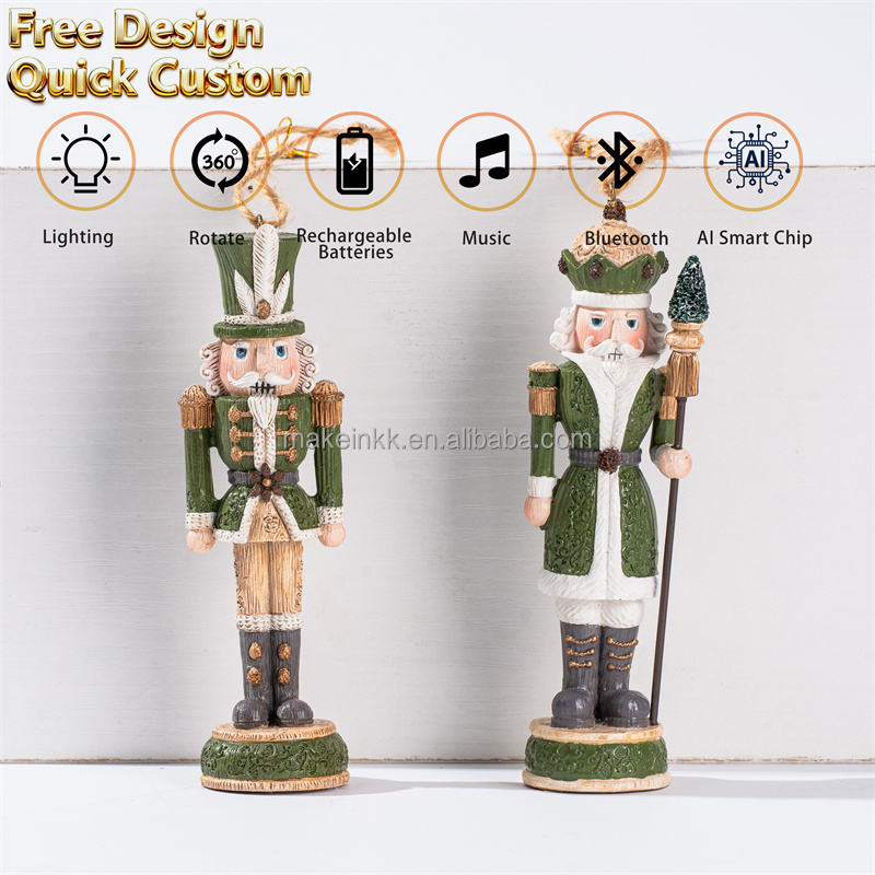Vente flash : Ensemble d'ornements de casse-noisettes rustiques verts avec un design de couronne de plumes pour la décoration de l'arbre de Noël, ornements de Noël