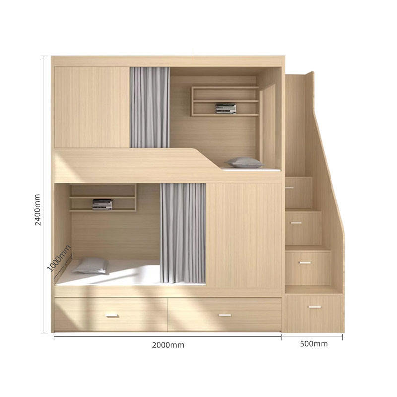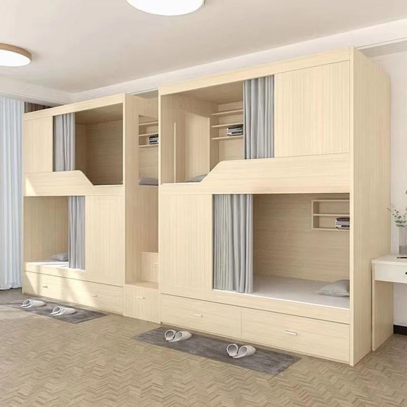 Vente Chaude Lit Capsule Solide Jumeau Double Superposé en Bois avec Tiroirs de Rangement et Rideau de Lit