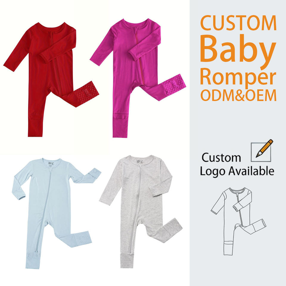 Vente chaude, fermeture éclair en fibre de bambou de couleur unie pour style décontracté, barboteuse pour bébé garçon et fille, longue barboteuse d'escalade ODM 0-18 mois