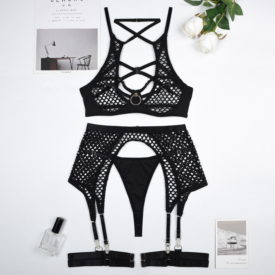 Ensemble de Lingerie en Maille Transparente Couleur Unie Nouvelle Collection – Soutien-Gorge et Culotte Creuxsés 3 Pièces – Offre Spéciale