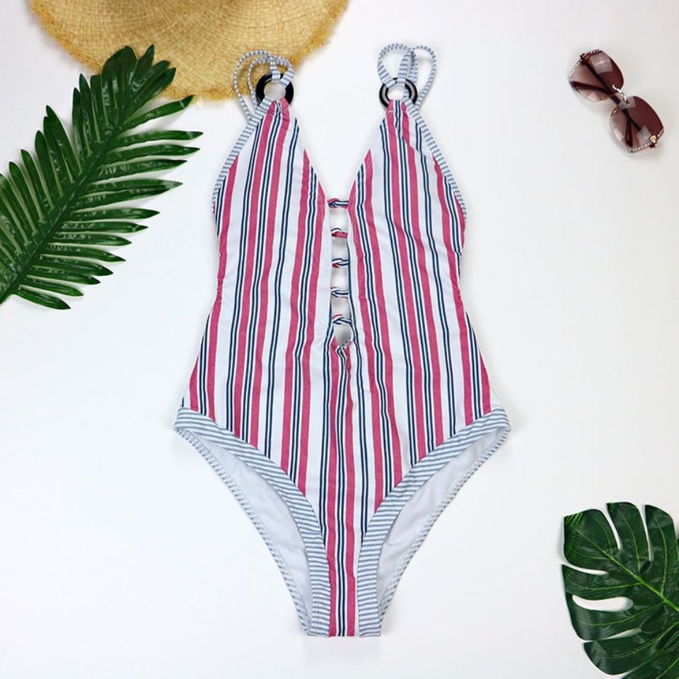 Maillot de bain sexy dos nu échancré, coupe haute, séchage rapide, 2 pièces, en Spandex/Polyester, avec push-up et string en V – Grande Vente