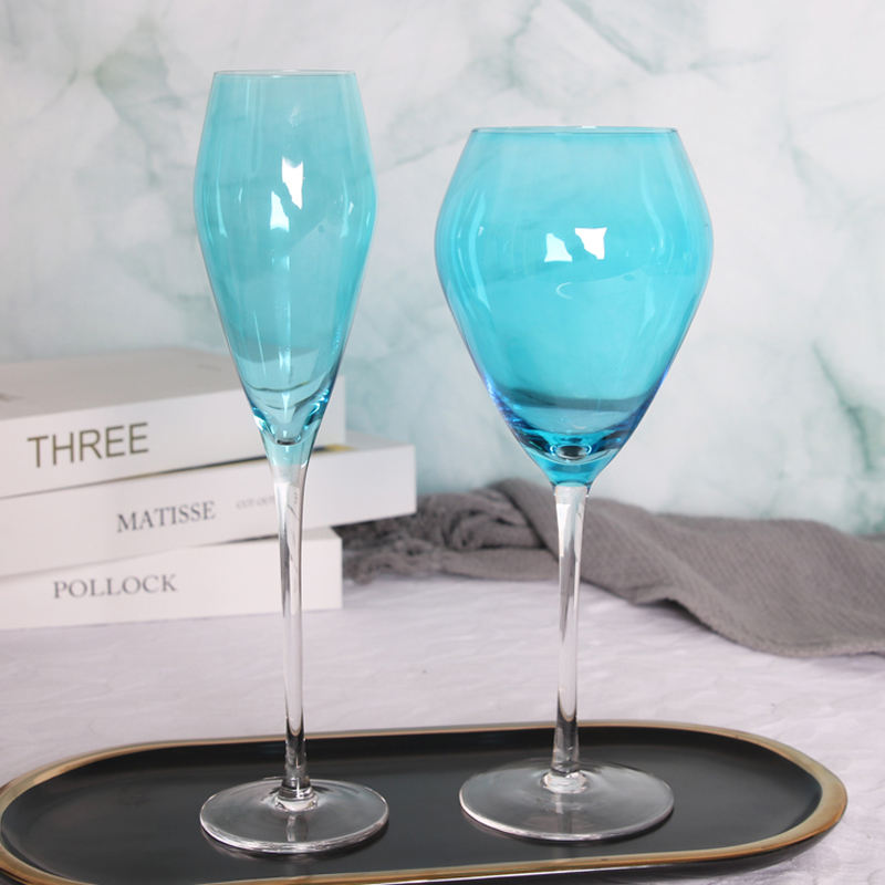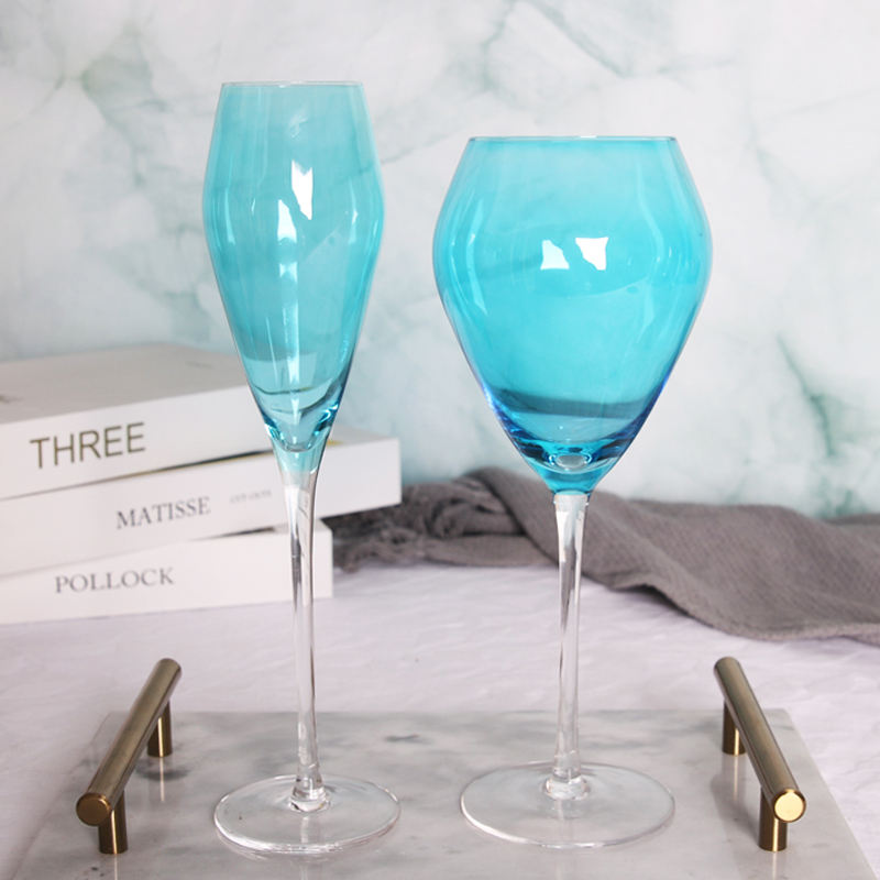 blue color tulip goblets glass