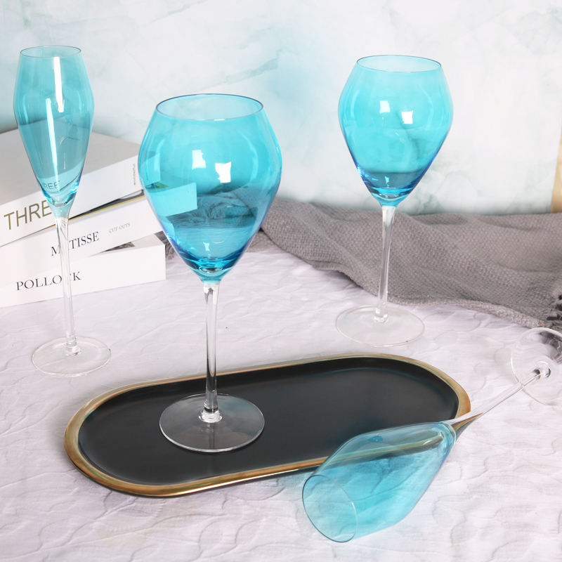 blue color tulip goblets glassDispositif