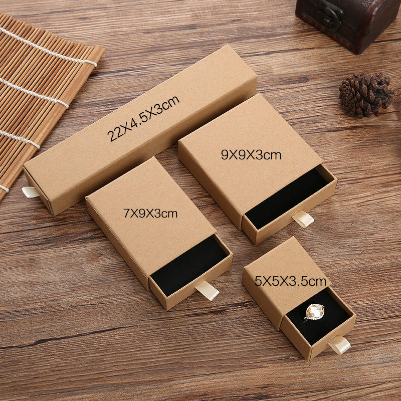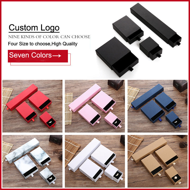 Boîte à bijoux carrée simple à tiroir coulissant avec logo personnalisé pour bagues, colliers et bracelets – Offre Spéciale