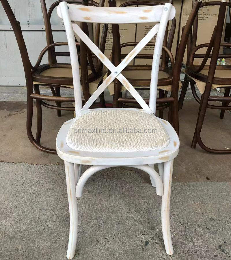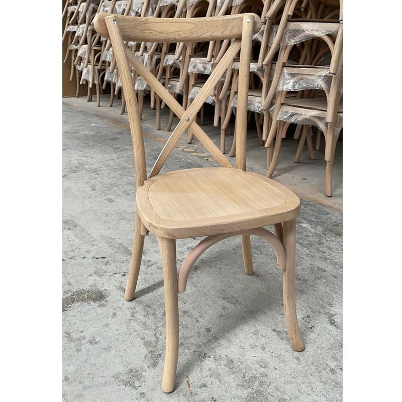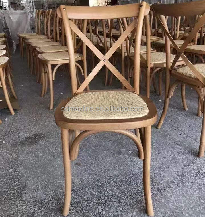 Chaise de salle à manger empilable en bois de ferme au design vintage, idéale pour les mariages et banquets en vignoble, avec dossier croisé - Grande Vente