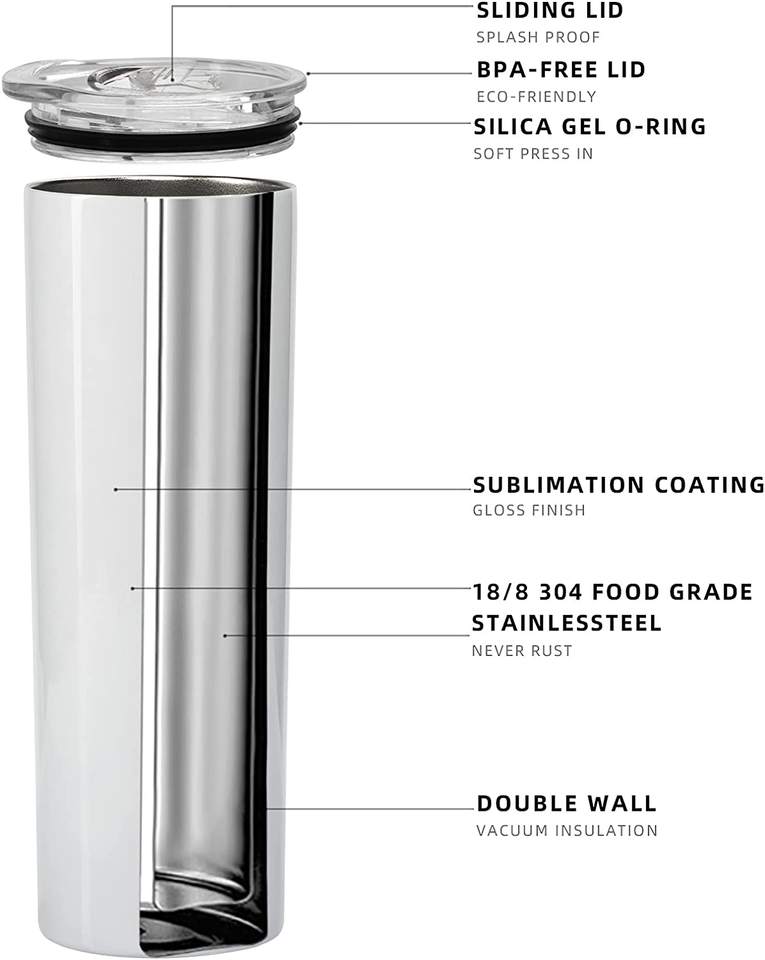 Tasse à café droite vierge à double paroi en acier inoxydable Offre Spéciale isolée sous vide avec paille 20oz