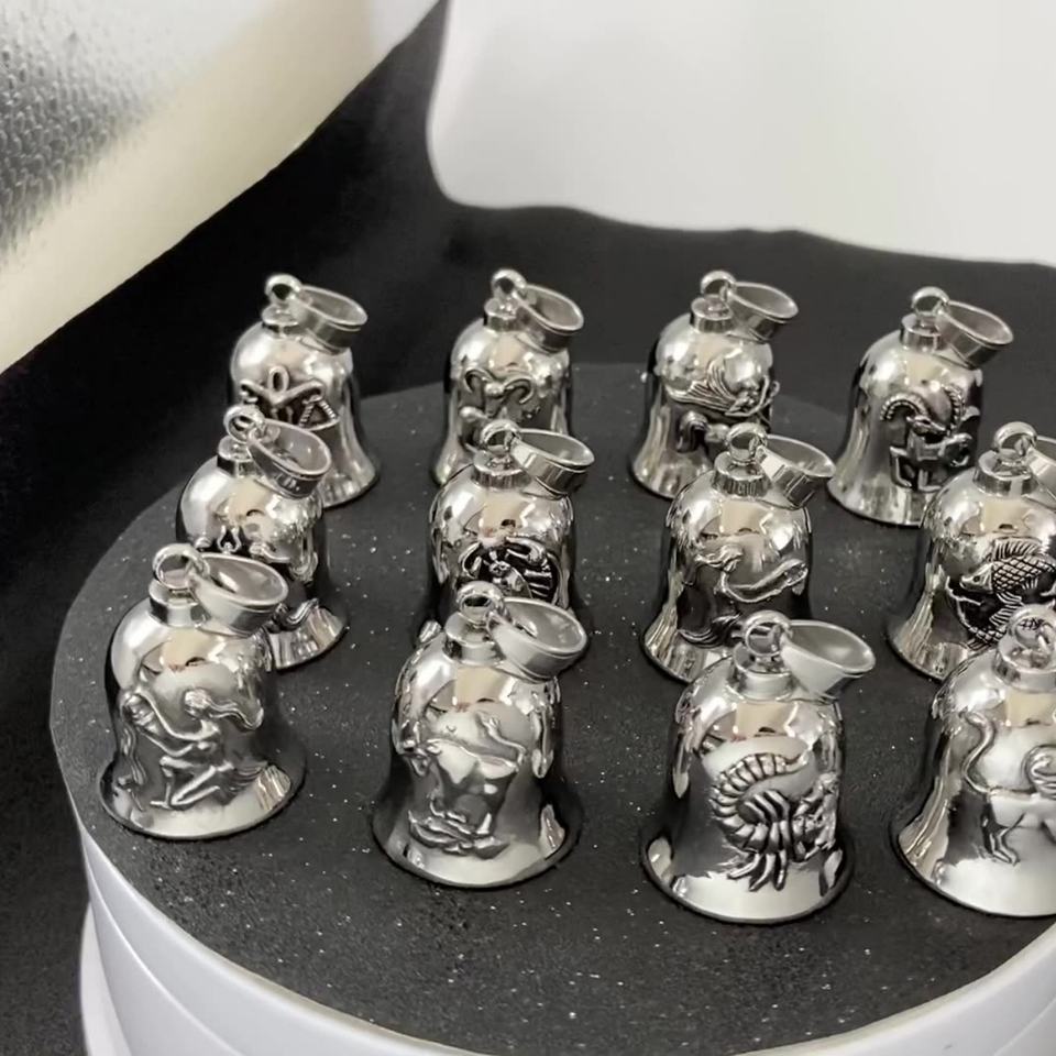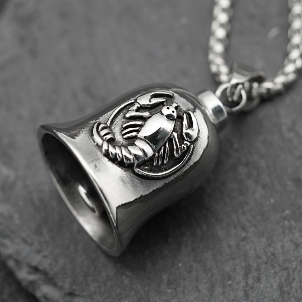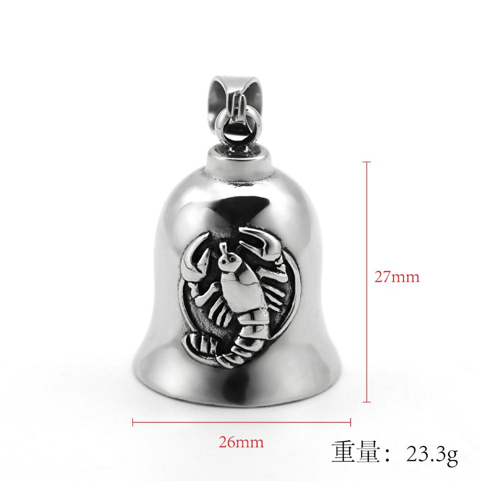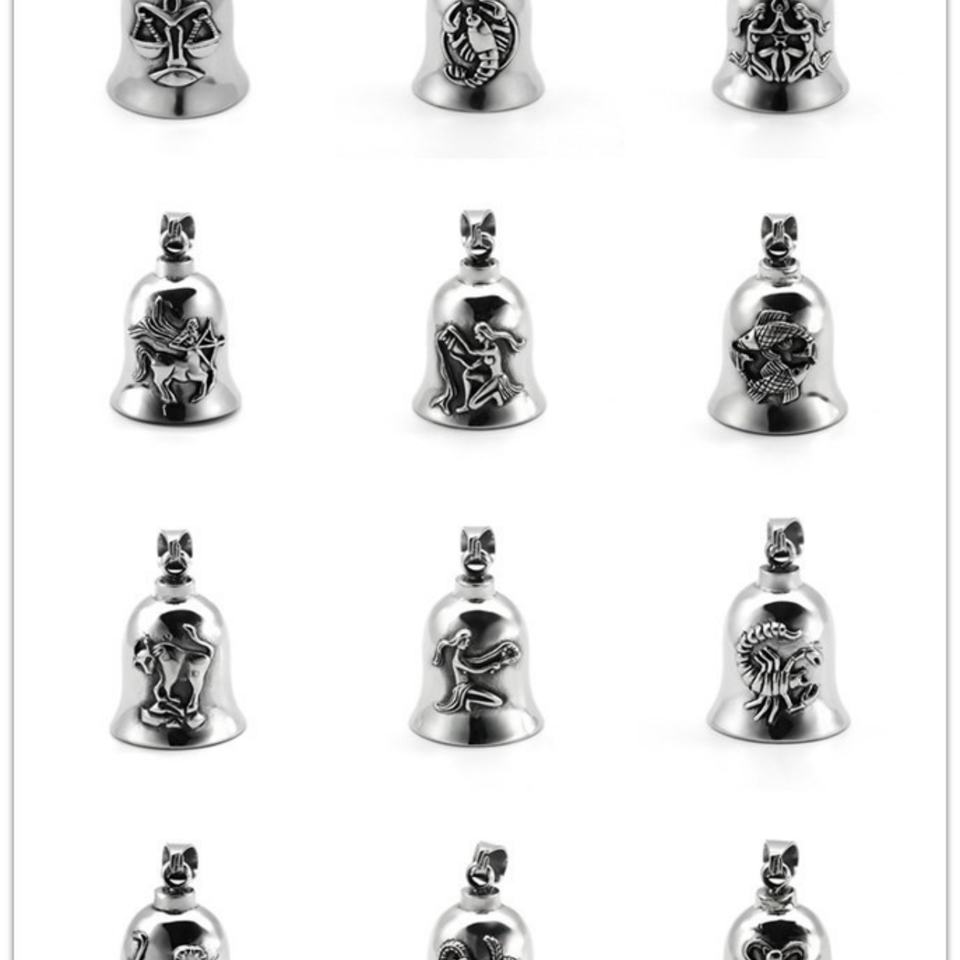 Pendentif en acier inoxydable pour homme, motif motocyclette, avec clochette des douze constellations, porte-bonheur - Grande Vente
