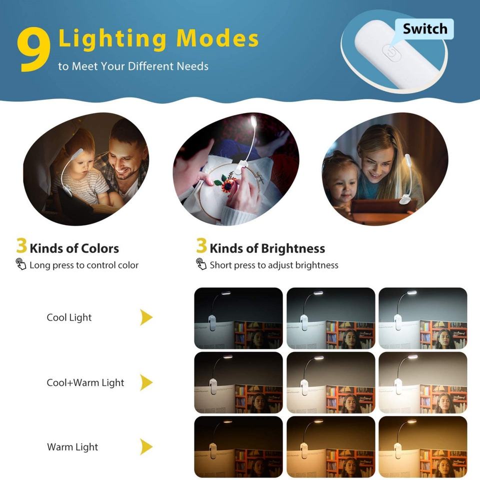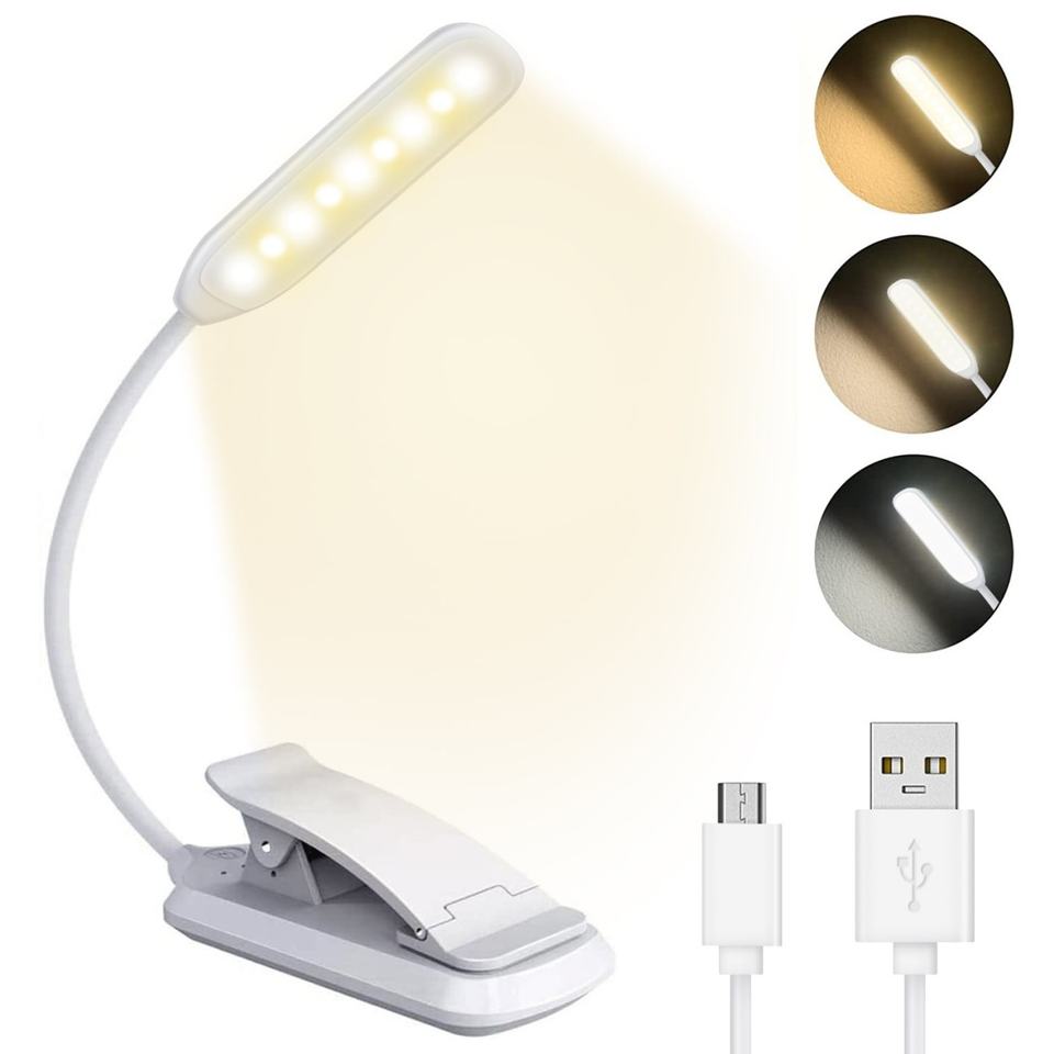 Lampe de lecture de bureau à intensité variable sans paliers, rechargeable par USB, 9 LED, pliable, avec pince – Offre Spéciale