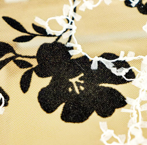 Style Offre Spéciale noir design floral troupeau tulle tissu 100 nylon floqué maille tissu pour robe