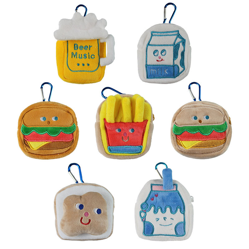 Hot Sale Stylish Plush Cartoon Fast Food Earphone Pouch Multi-Pocket Coin Holder Storage Burger Fries Keychain Celebration Gift