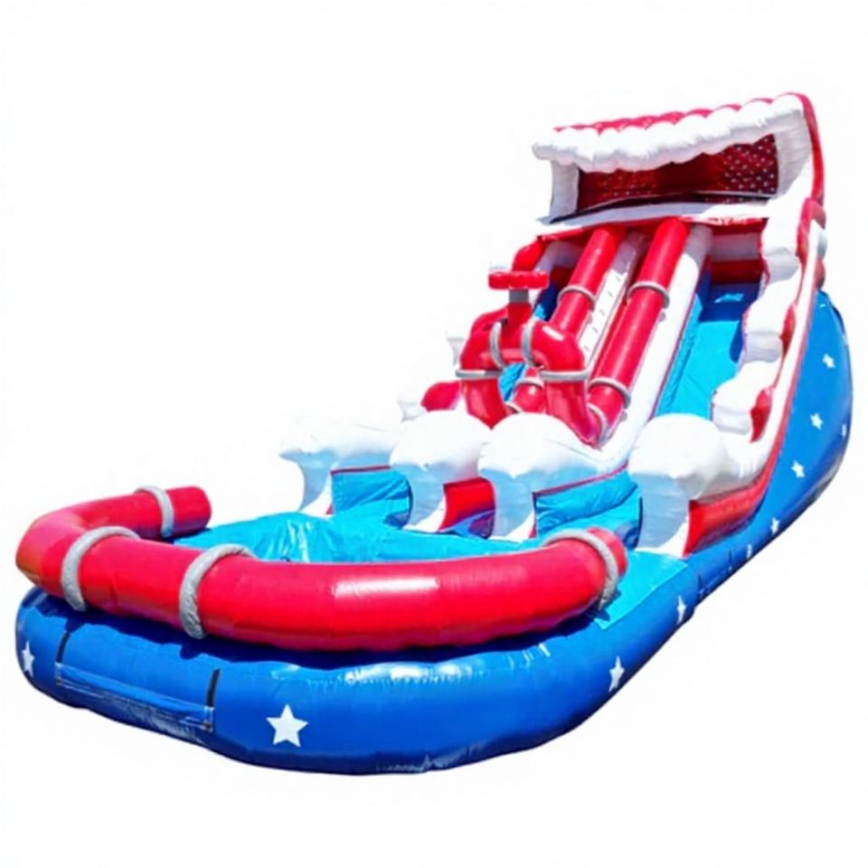 Vente flash : Grand toboggan aquatique gonflable Sunny Fun avec piscine, étoiles du sport pour le plaisir